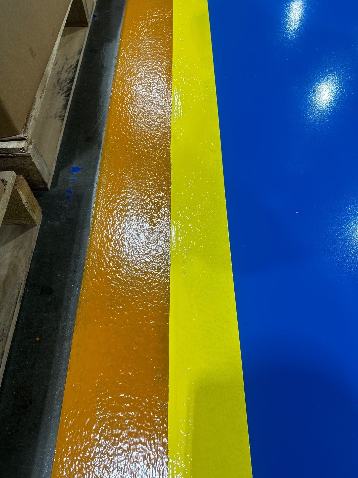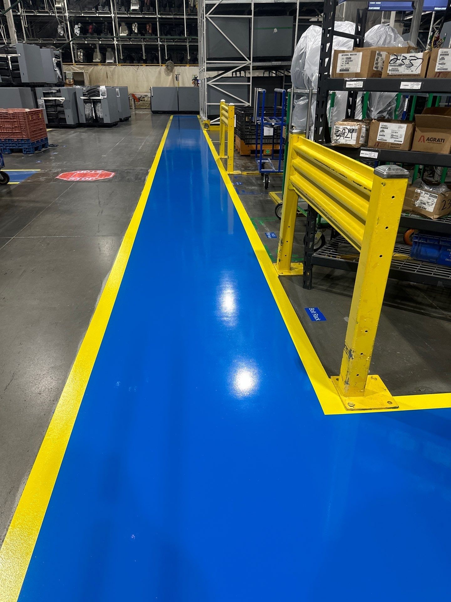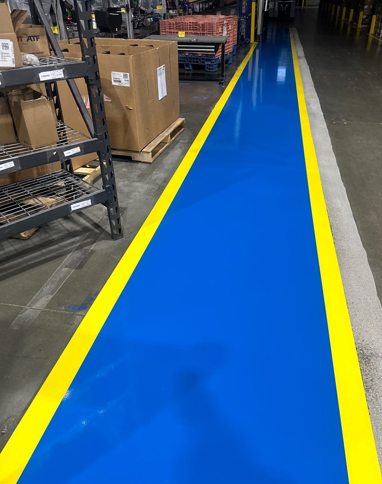 Epoxy floor coatings, epoxy coatings, epoxy line striping, manufacturing aisle epoxy, epoxy aisles, industrial epoxy aisle, manufacturing epoxy floors, Industrial Applications Inc, TeamIA