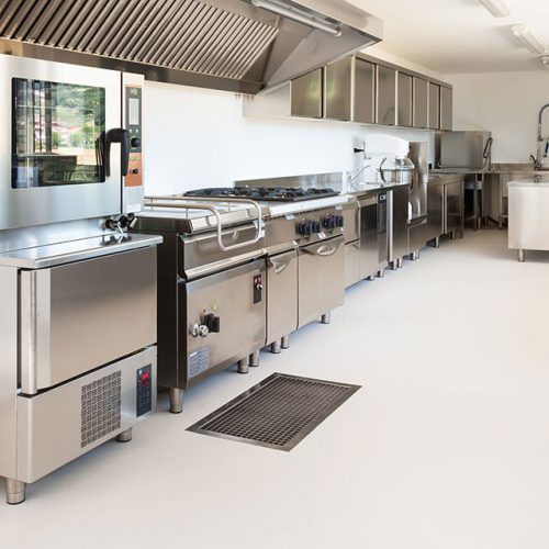 This customer had a commercial kitchen where the tile grout had failed and they were very concerned about the bacteria that was harbored in these areas. We began by demoing the tile, profiling the concrete and troweling in 6” cove base. Applying a ¼” cementitious urethane solution, we created a monolithic floor able to withstand the demands of a commercial kitchen. The seamless, anti-microbial, non-slip solution created a clean, durable, effective and safe solution for their busy kitchen.