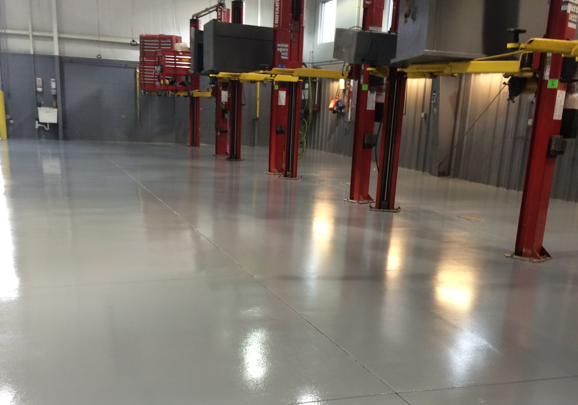 The newly coated concrete floor was turned over to the car dealership owners by 3 PM on Sunday, with plenty of time for the dealer to safely open the doors to foot and vehicle traffic on Monday morning.
