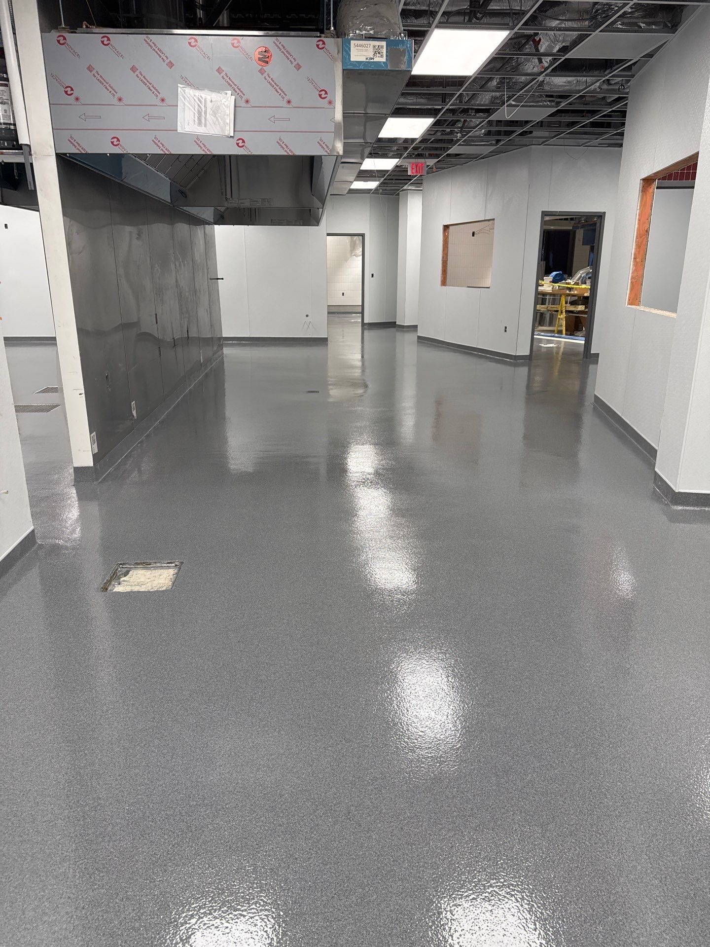 Epoxy flooring, epoxy floor coatings, polyaspartic coating decorative quartz, commercial kitchen, commercial kitchen flooring, seamless floor coatings, monolithic flooring solution, epoxy coating Henderson TN, epoxy coatings Memphis TN, Industrial Applications Inc, TeamIA, IA35years