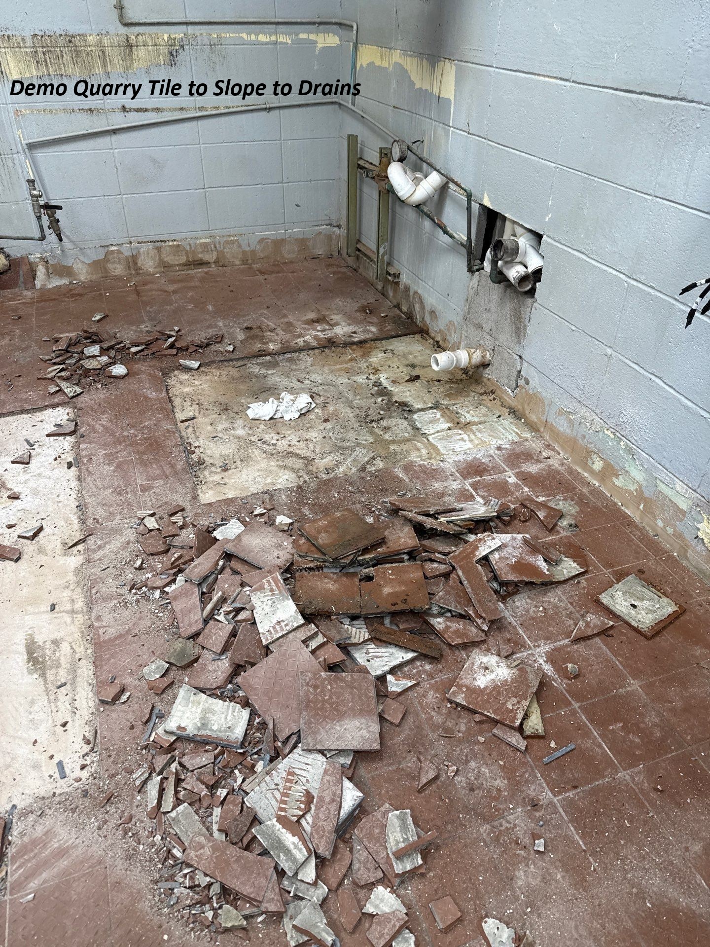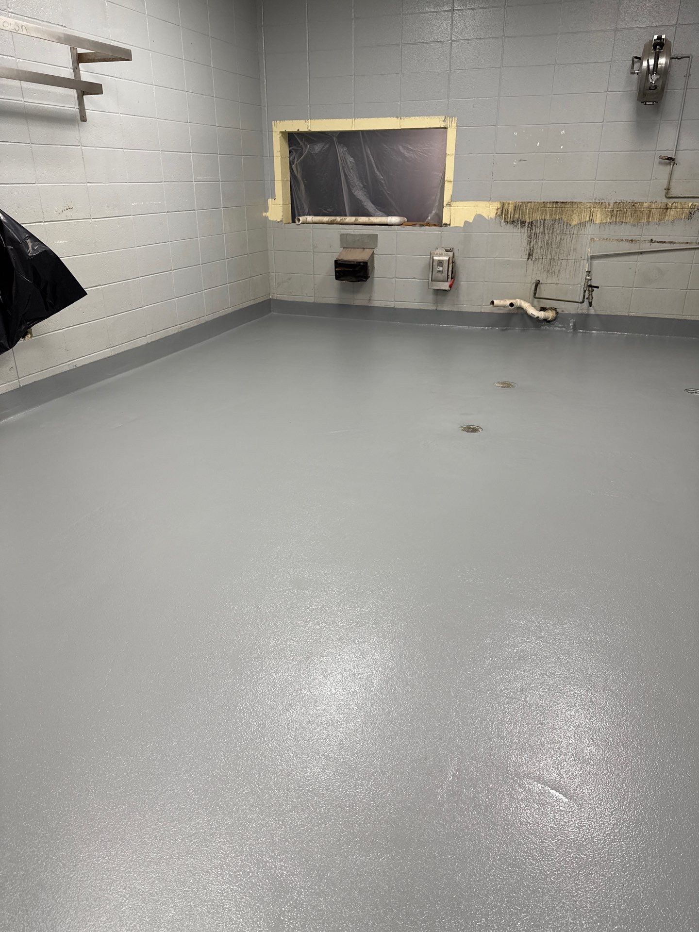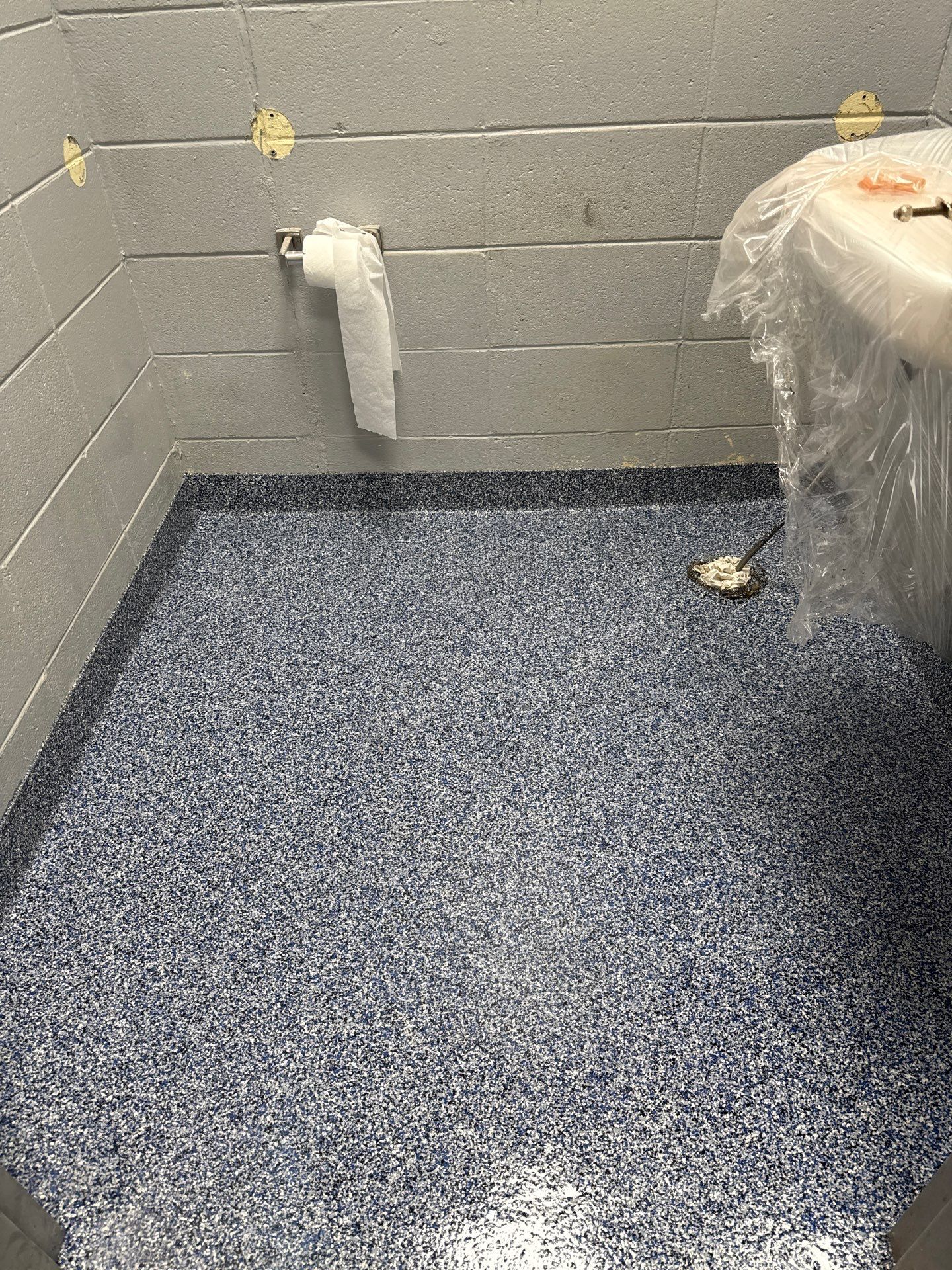 School kitchen floors need to be – resilient to withstand heavy traffic and spills, easy to clean to ensure a hygienic kitchen, slip resistant to provide a safe work environment and durable to last a long time to fit within school budgets.  Many schools have reached out to Industrial Applications Inc over the years to provide a reliable floor, expertly installed and able to withstand the high wear and heavy cleaning essential in a school kitchen.  This recent project was no exception.  #TeamIA prepped the existing quarry tile with shot blasting, and installed urethane concrete with an integral cove base through the kitchen and decorative flake in the kitchen bathroom.